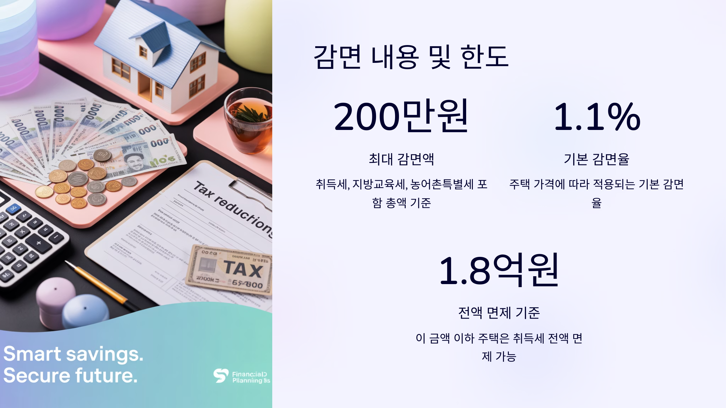 | 주택 매매가 | 기본 취득세(1.1%) | 감면 후 부담 |