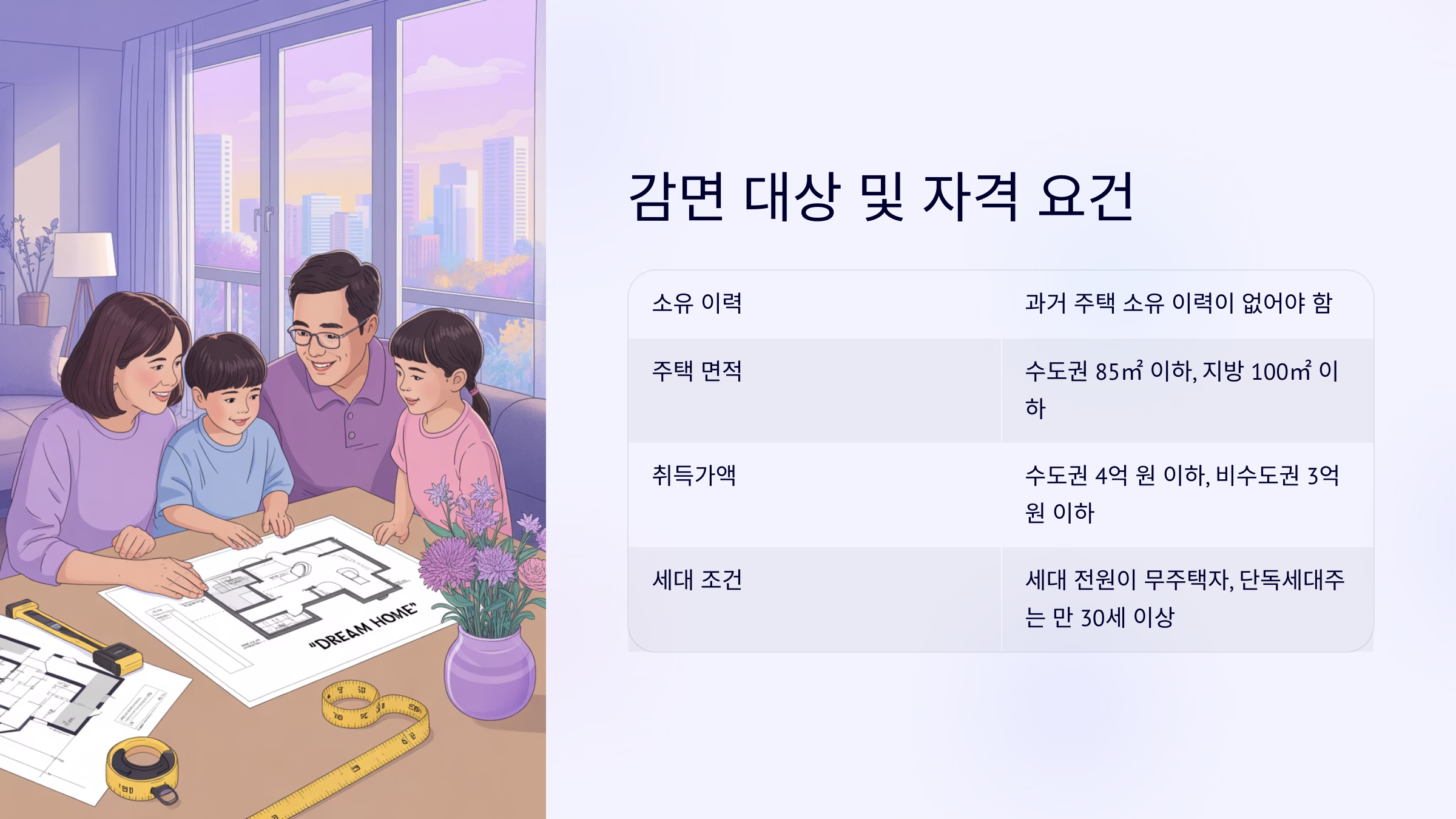 | 소유 이력 | 과거 주택 소유 이력이 없어야 함 |